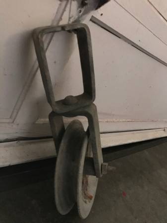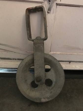 This is a huge metal pulley with a 10" wheel. Overall length is 19". See photos. If interested, please call only. Please do not text or email. Local pick up only, cash only