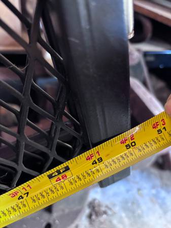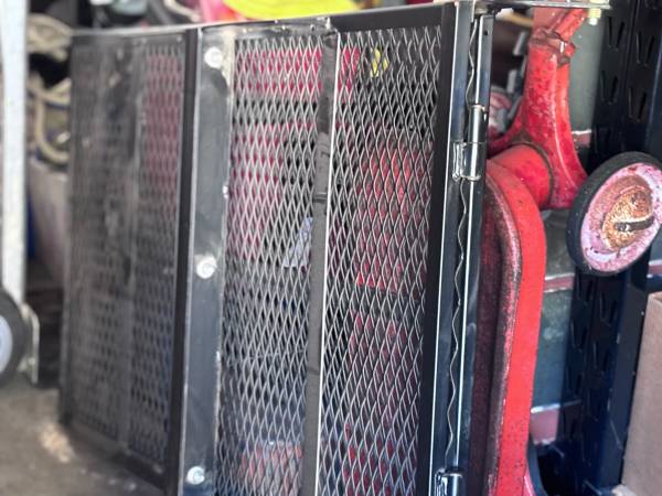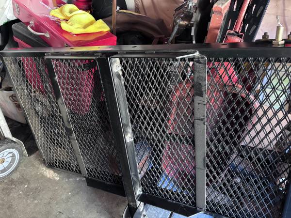 Steel folding wheelchair carrier with folding ramp to use on your tow receiver of your vehicle. The platform is about 28" wide and 50" long, overall 92" long. The ramp is about 28" wide and 42" long. If interested, please call. Please don't text or email