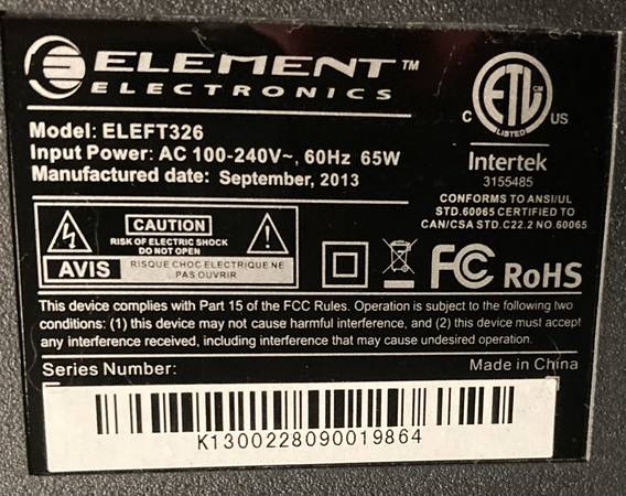 32" Element flat screen tv with hdmi, This is not a smart TV Comes with the stand and remote control. 720P resolution It has LED backlighting. It does a very good job displaying fine detail and...