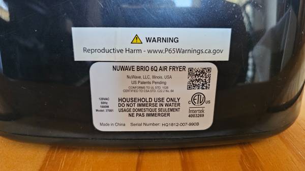 NuWave Brio 6 Quart Air Fryer, used a few times; works perfect!