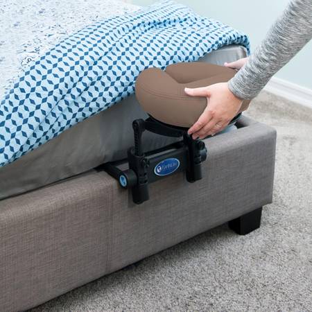 CONVERTS BED INTO A MASSAGE TABLE: Patented adjustable platform slides easily between mattress and box spring, while the adjustable platform with face pillow creates the perfect cushioned resting surface for the head.