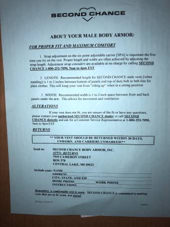 Brand New SECOND CHANCE Bulletproof Vest. XL size Been dehumidified bagged and in the box for some years in my closet. Paid close to $600 First $350 cash takes it. Respond with a phone number for a...
