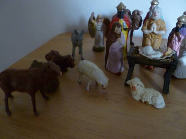 Clearing out Grandpa's Estate Vintage German 21 Piece Nativity Set May actually be Antique Some Stamped Germany Figurines are hollow Asking $15