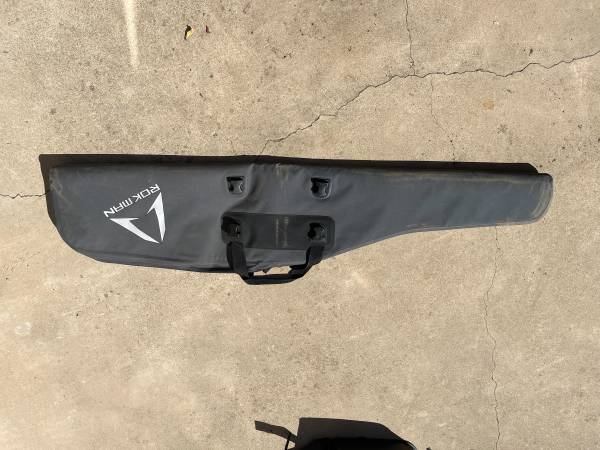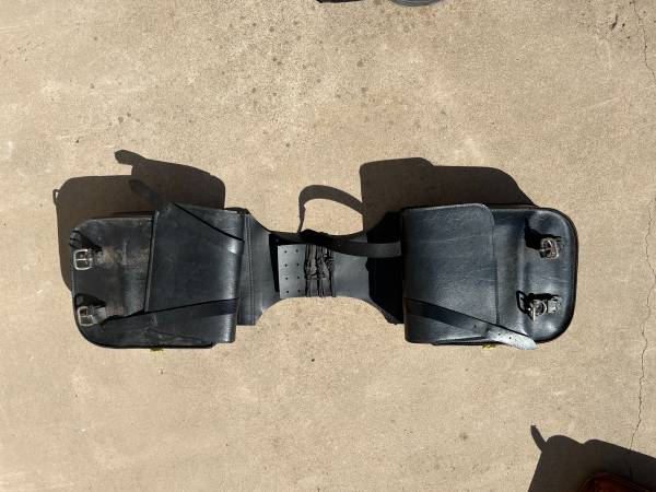 Black saddle bags are adjustable. Rokman grey scabbard.
