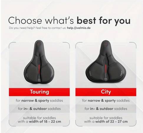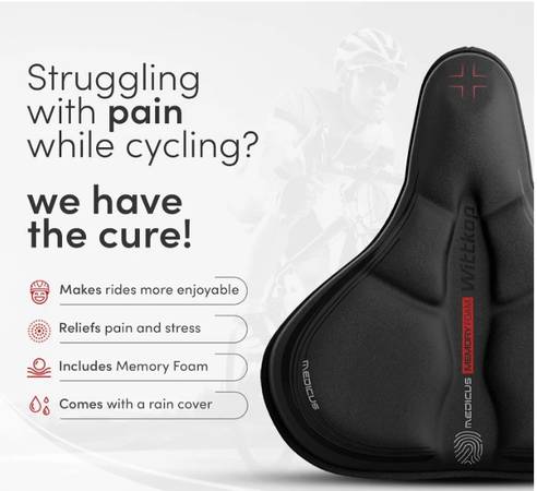 COMFORT 5 ZONE CONCEPT - Your bike seat cushion offers you a very pleasant riding experience that is rich in comfort and convenience thanks to its innovative 5-zone concept and anatomically shaped gel insert. ANTI-SLIDE PAD - Say goodbye to slipping on your bike seat thanks to your seat pad. The specially designed anti-slide nubs on the underside of the saddle cover as well as straps for better fastening prevent any slipping. EXTRA THICK MEMORY FOAM - The shape memory polymer