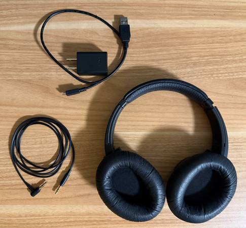 Functional headphone with case and charger. It also comes with an auxiliary cable. The case is a little old. Payment via Venmo or cash only.