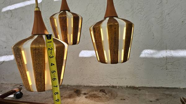 Antique Decorative Ceramic Ceiling Lighting, 3-8" diameter bulb with 40"+/- hanging down from ceiling. Good condition. No chip nor cracks.