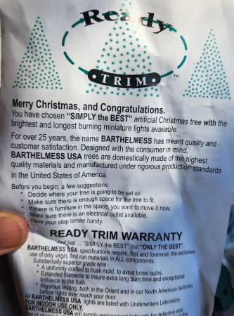 Perfect for large busy family or business looking for easy, mess-free way of setting up an impressive Christmas display. Should last at least another 22 years.... comes with unused extra light strands and plenty of extra spare bulbs.