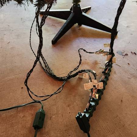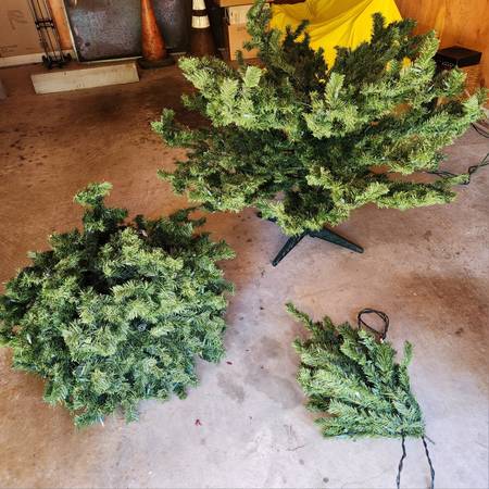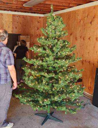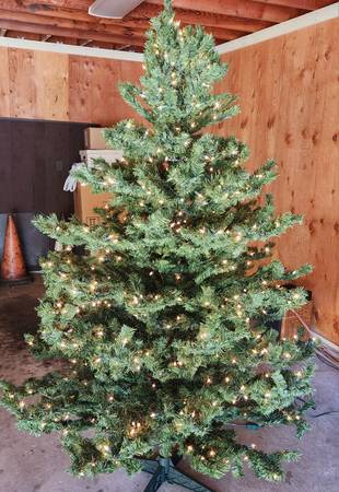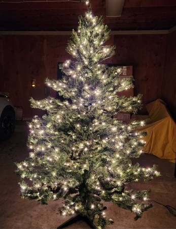 Beautiful full Dakota pine Christmas tree and stand with hundreds of clear/white lights. Came with a 25-year warranty. Was only used a few times before my parents stopped hosting the family Christmas.
