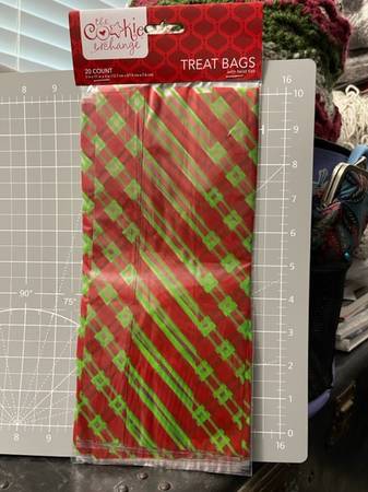 NEW!!! SIZE: 5" x 11" x 3" INCLUDES: - 1PACKAGE OF 20CT. RED/GREEN PATTERN CELLO TREAT BAGS - TWIST TIES