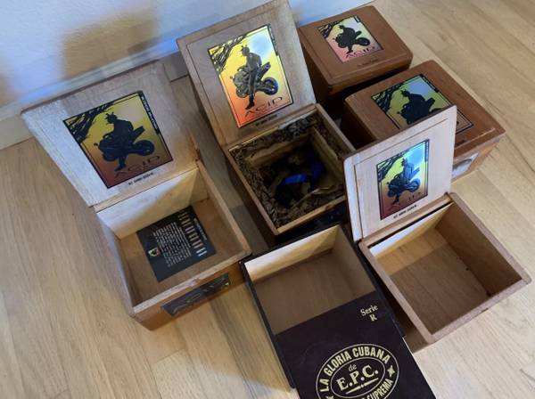Assorted Wood Cigar Box Lot of 8, sizes approx. 7"x7"x4", quality built, in good to excellent condition. If this listing is up, the boxes are available. The price is for all of 8.