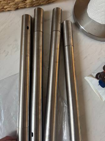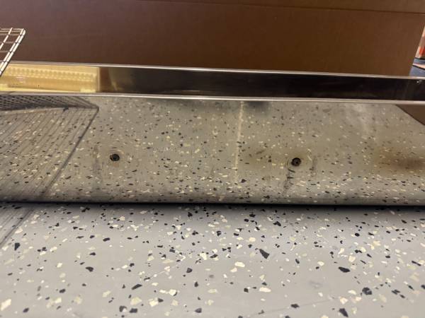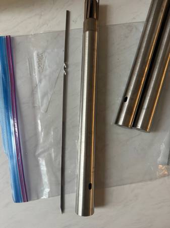 Large stainless steel smoker box with removable rack. And four sets of skewers ( used once and cleaned )