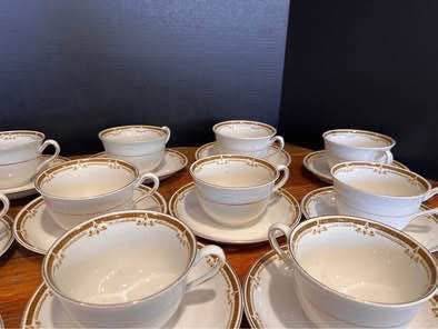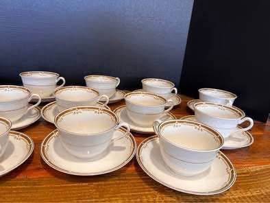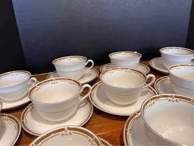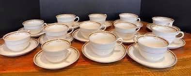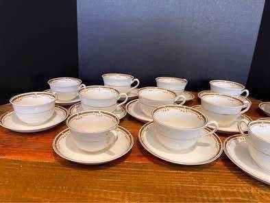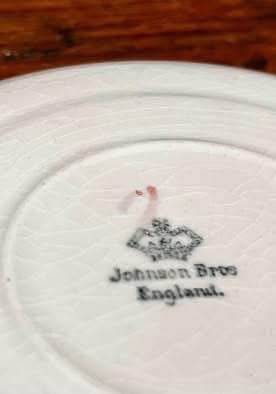 Porch pick up. Set of 13 Vintage Johnson Bros. England Porcelain Tea Cups & Saucers. 10 Tea Cups 3 Demitasse Tea Cups Has some crazing but over all in good condition. Cash only I do not deliver...