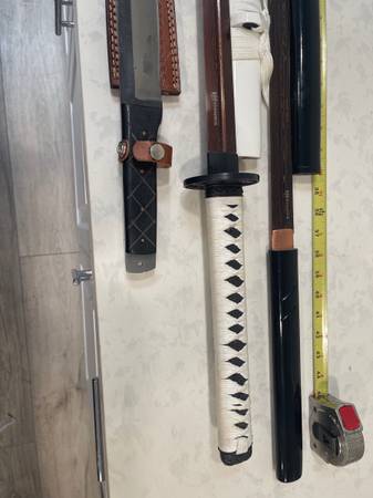 Two Damascus swords good quality, great condition and 1D to steal machete