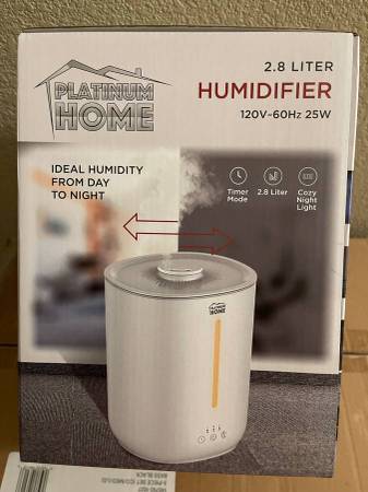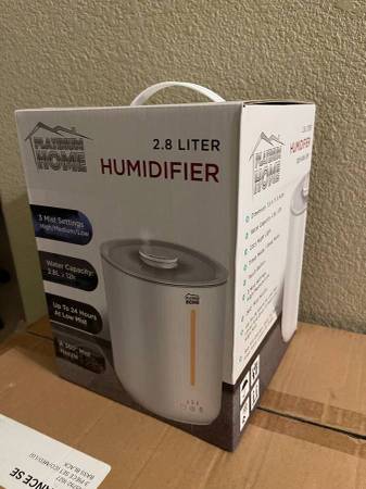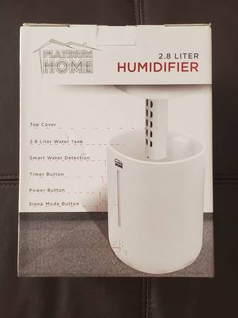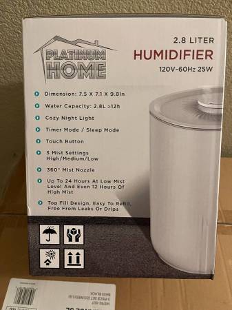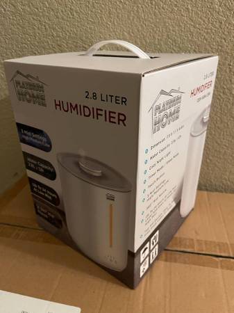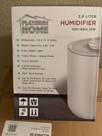 BRAND NEW. Never Open. Brand new in box. Humidifier 2.8 Liter. 3 Mist Setting, 2.8 Liter Water Capacity, 360 Degre eMist Nozzle, Cozy Night Light