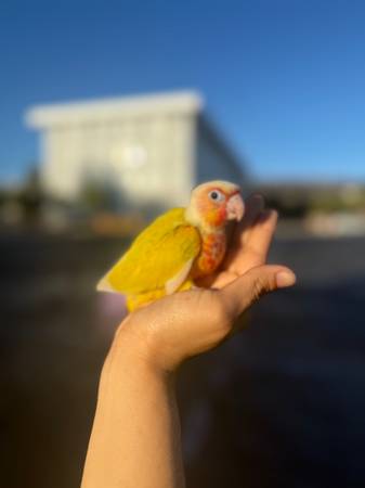 Beautiful healthy baby sun cheek GC conures Hand raised and hand fed super friendly and tame Males and females available $350 rehoming fee Firm Being hand fed 3x a day I also sell feeding syringes...