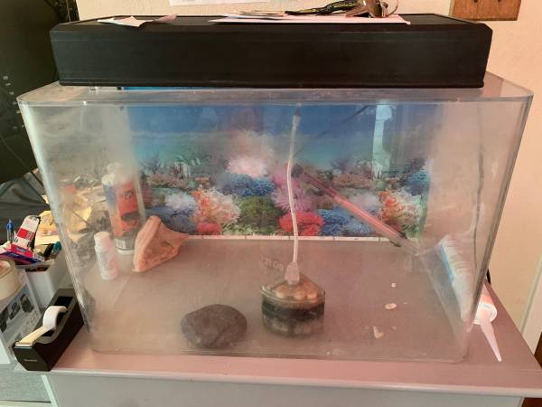 I have an acrylic 20 gallon tank with top light heater and sponge filter for sale. $40