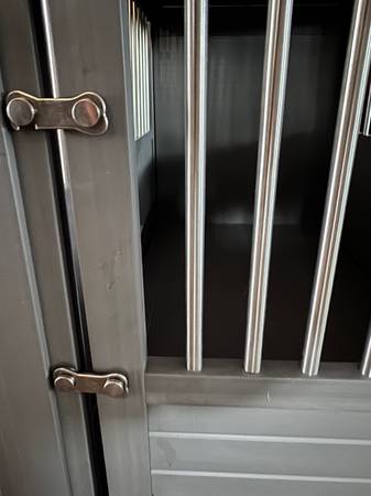 Spindles made of stainless steel tubing and a stainless steel latch; double latches on large and x-large crates