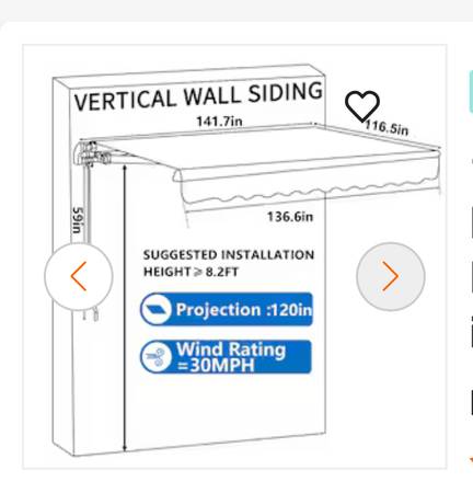12 ft. W x 10 ft. D Manual Patio Retractable Awnings in Beige. Offered for $165.00 offer !