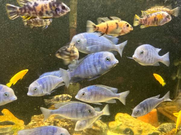 I have a number of Cyrtocara moorii (Blue Dolphin cichlids) available. They are about