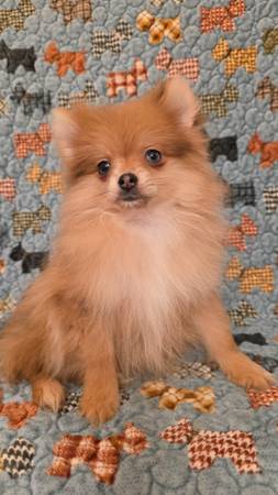 Hi i have a beautiful cream pomeranian puppy also know as an orange pom. She is very loving. Loves kids and cats. She is 12wks old. She loves to cuddle and sleep in your arms. Adoption 1,700 obo
