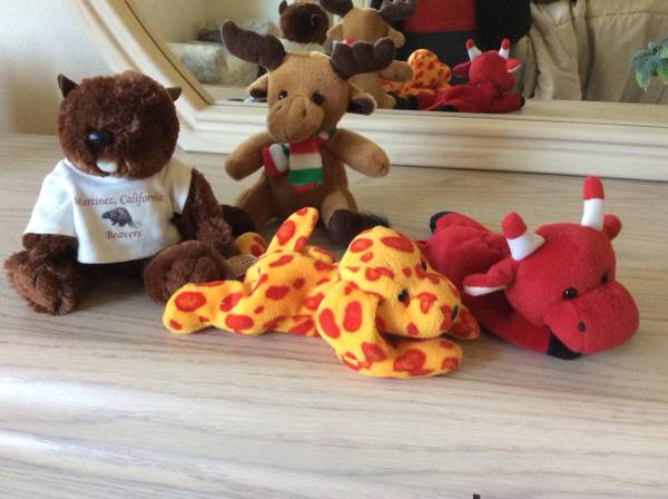 Red cow or yellow with red dots-$5 each, Pug dog- 1996Ty-$10