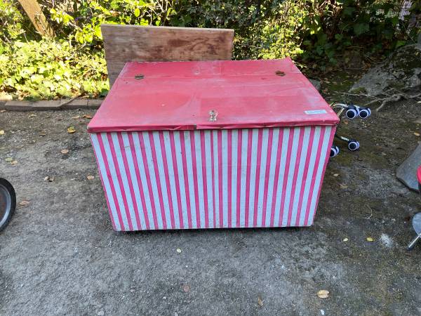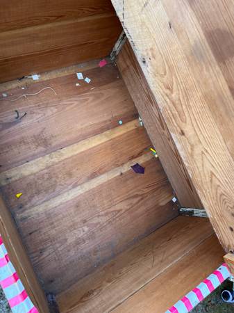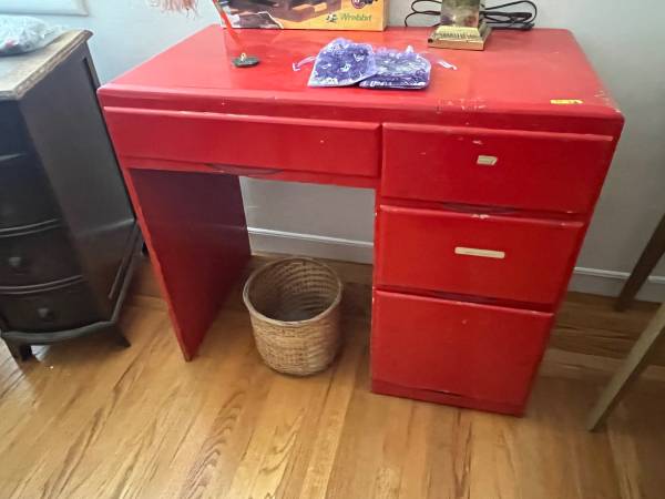 Greetings! We are selling some office furniture out of in El Cerrito estate. First, is a mid-century modern desk for $60 Second, is a vintage brown wooden desk for $30. Third, is a red wooden desk...