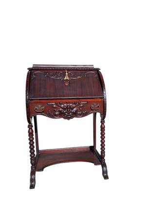 Brass hardware: Ornate drawer pulls with classic Victorian styling
