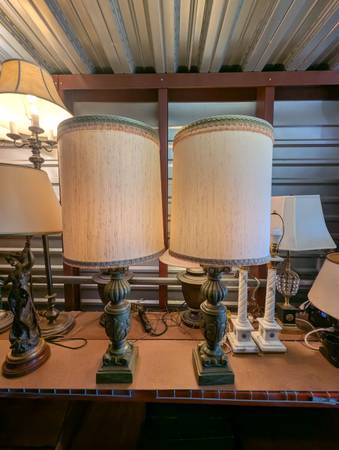 Elegant pair of vintage mid‑century porcelain lamps — tall, green, and full of character. Great as statement pieces for a living room, entryway, or bedroom.