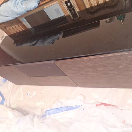 Textured wenge doors with black, tempered glass top and wenge finished side panels