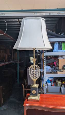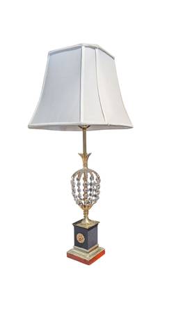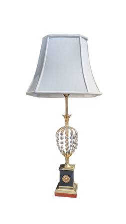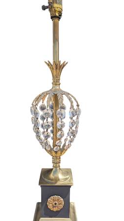 Gold-tone metal stem accented by a crystal orb cage—a sphere-like section made of faceted glass or crystal elements arranged between gold supports, giving it a refined and luminous appearance.