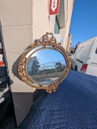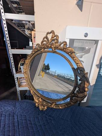 The frame is ornately carved and gilded (gold-painted or gold-leafed), featuring ribbon, bow, and floral motifs.