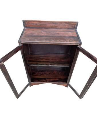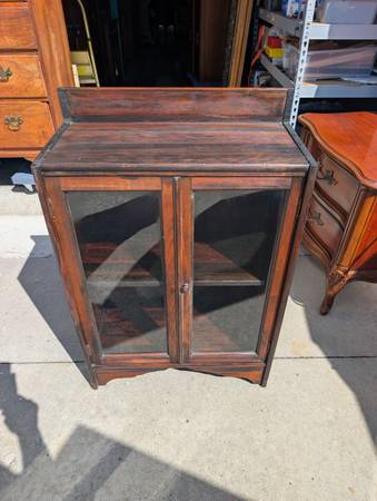 Two glass doors One shelf, not adjustable 23.5Lx11Wx32.5H Instagram: Mid.centurymike Cash / Zelle / Venmo All in person. Curbside delivery available: $50 Alameda $75 East Bay $100 San Francisco or...