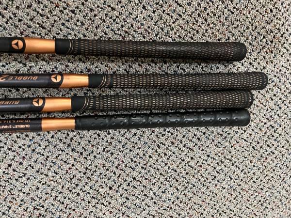 Four Taylor Made golf clubs: 1. TaylorMade Burner Bubble 9.5° Driver S-90 Plus Bubble Shaft 2. TaylorMade R-80 Bubble2Shaft 9 iron 3. TaylorMade R-80 Bubble2Shaft Sand Wedge 4. TaylorMade R-80...