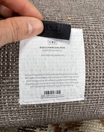Hi there - I'm Selling a CB2 Kole Charcoal Solid Performance Rug (5’x8’) — soft, lustrous nylon that shifts tone beautifully with the light. Bought for $600, currently on sale at CB2 for $486, moving and selling for $40.