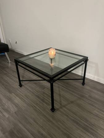 Glass coffee table with black frame in great condition. Tempered glass top. Frame is sturdy and stable. Clean and ready to use. Selling due to move out.