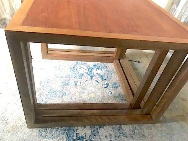 Stunning MCM set of 3 nesting tables made by San Francisco Architect. The middle one is in orignal state and excellent original shape. the large and small ones were refinished as can be seen in photos.
