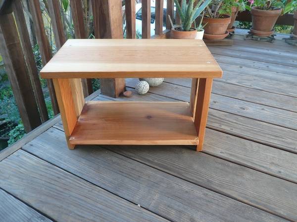 Solid wood shelf, newly made from repurposed wood, finished with natural, non-toxic linseed oil. 18 3/4"w x 11 1/4"d (top) x 11.5"h. Shelf clearance is 8.5" Cash preferred, Venmo accepted. Available...
