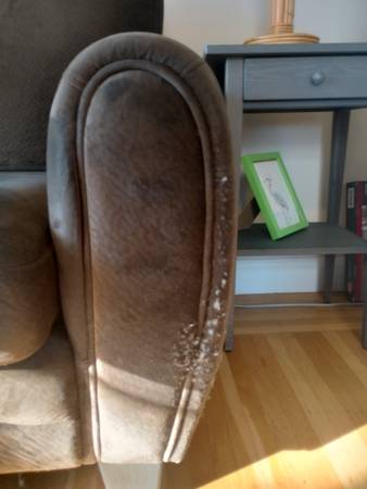 This soft brown loveseat is super comfortable and nice and compact. Great for a small space. I've had it one and have years and bought it new. The only damage is cat claw scratches to the sides near the bottom. New price was $650. Selling for $190.