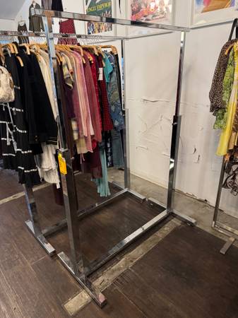 I have over 20 adjustable height clothing racks, some can be turned into double racks, most have two wheels to move them. Paid $80-100 each selling for $50 or cheaper if you buy more than 1