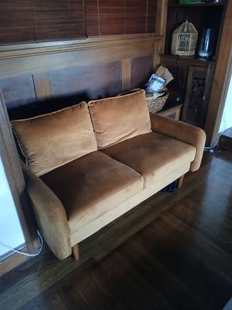 Comfy mid century modern golden brown couch in great condition. No stains, well cared for.