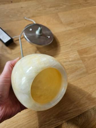 (2) Pendant Onyx Teardrop Fixtures with stone shade - 4"dia x 6"high: pair, $600 (originally $350+ each)