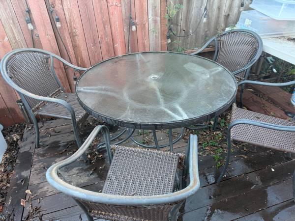 I've used these tables + chairs for years at my old house, but I recently moved and there isn't enough space for it on my new patio. So sadly, I'll need to let it go. My loss is your gain!
