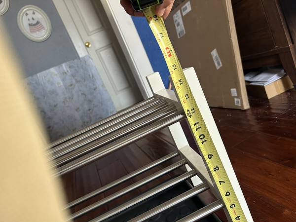 In good condition. Sturdy. Comes with a dust/dirt collector to go underneath the rack. Please include your phone number for text coordinating if you're serious about wanting the rack. 31"x12.5"x14.5"