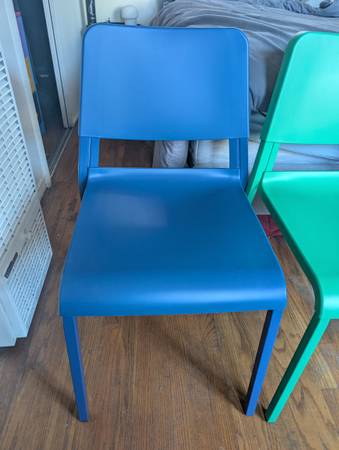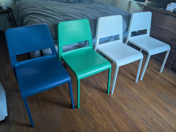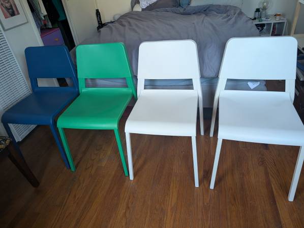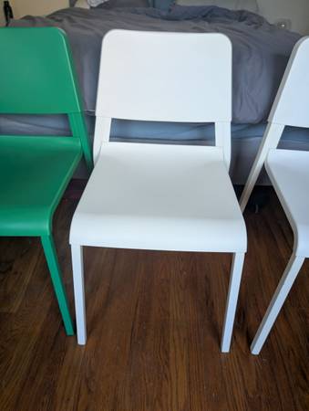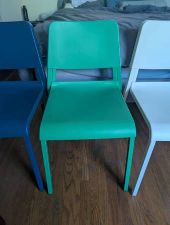 IKEA TEODORES chairs $15 each 2 white - sold 1 green 1 blue original price $45 Pick up only. Cash or Zelle only.