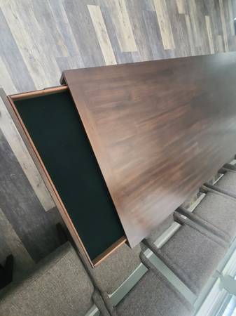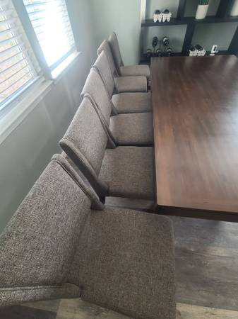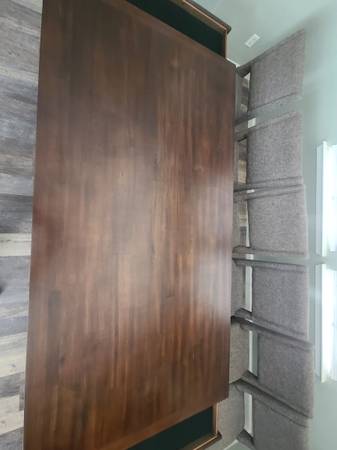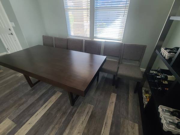 Lightly used dining table with 6 chairs. The dining table has storage for utensils. Negotiable on price. Pick up only. 76x38x31