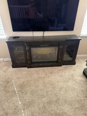 I have 2 TV stands from Ashley Furniture, 1 with electric fireplace, 1 without. Condition is used but good.