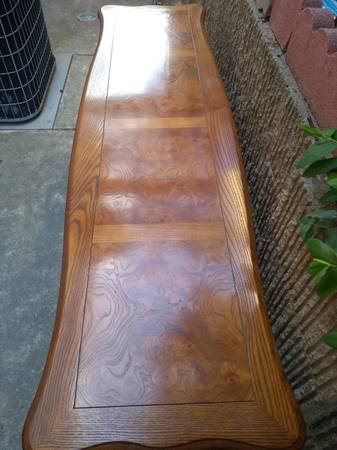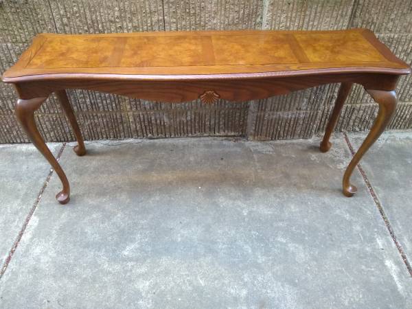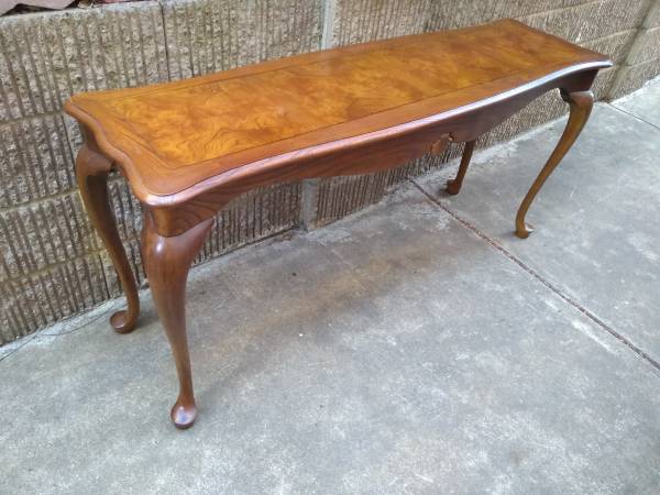 This Queen Anne style console table made of solid wood with carving and abundant natural wood grains. 59"L x 17"W x 28"H