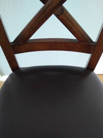 High-end bar stools with heavy solid wood frame and soft uphostered genuine leather seat in dark brown color. The ergonomic curved back support provides more comfort. Sturdily constructed from solid hardwood stationed by heavy duty bolts. Seat measures 20"L x 19"W x 25"H. Back support is 18"H.