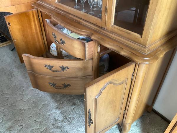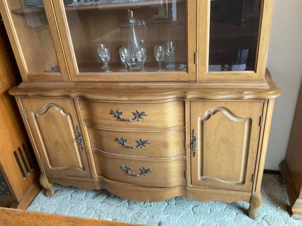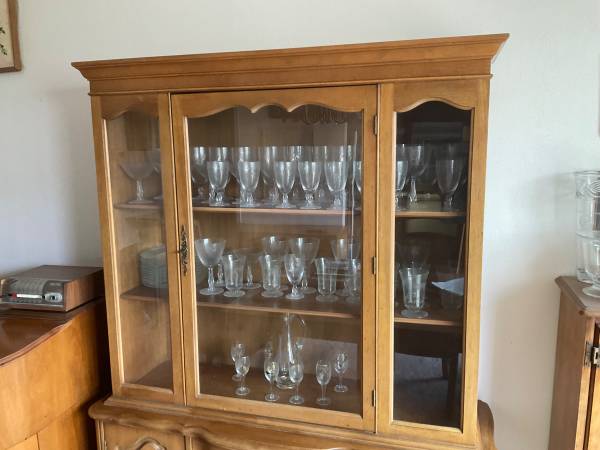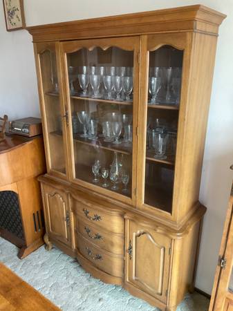 Thank for viewing this nice wood hutch in good condition. It measures 48" wide x 15" deep x 68 1/2" tall.